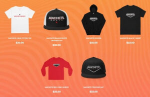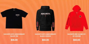 Machete.Music también permite a los usuarios del sitio crear mixtapes personalizadas con canciones clásicas de Machete y exportarlas a Spotify o Apple. Además, hay productos de Machete de edición limitada, como camisetas oversize, camisetas de béisbol negras y de camuflaje del 20.º aniversario, gorras snapback rojas y negras y camisetas blancas oversize.