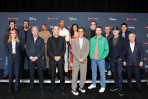 Luego, Robert Downey Jr., con el característico verde del Doctor Doom, hizo una dramática entrada desde el fondo del Dolby Colosseum, para deleite de los asistentes de CinemaCon, y avanzó hacia el escenario para proyectar un adelanto exclusivo de material de la película, antes de llevar al escenario al mismísimo Steve Rogers, Chris Evans.
